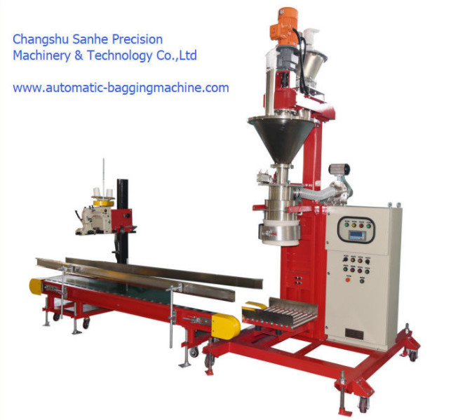 2) Cet emballeur est équipé du conducteur de vis vertical, le débouché du conducteur est proche de la bouche du sac de emballage, ainsi la baisse du matériel est petite et la poussière produite est petite en introduisant dans le sac ;